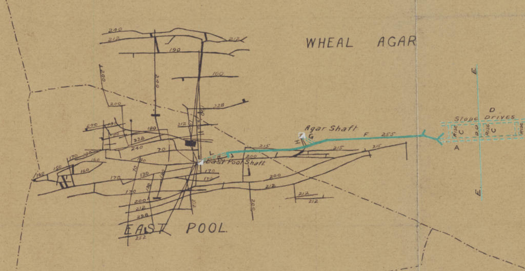 At the time of the incident, the mine was owned by the Wheal Agar Mining Company and had reached 235 fathoms (430m) below adit level. Unlike some of the larger, better known mines in the district, for example Dolcoath, Wheal Agar did not have the luxury of having a Man Engine installed. A man was a hugely significant innovation for the time and consisted of a mechanised collection of reciprocating ladders or sometimes simply rods with small plinths large enough only for a miner to perch on, as well as stationary platforms. This machine allowed miners to enter and exit the mines more efficiently. Unfortunately Wheal Agar did not have this luxury and as a result, the only way in and out of the mine was by traditional wooden ladders, or braving the cage that would be lowered down a single shaft.